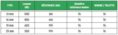 Peut remplacer le feuillard acier, les bobines sont plus légères